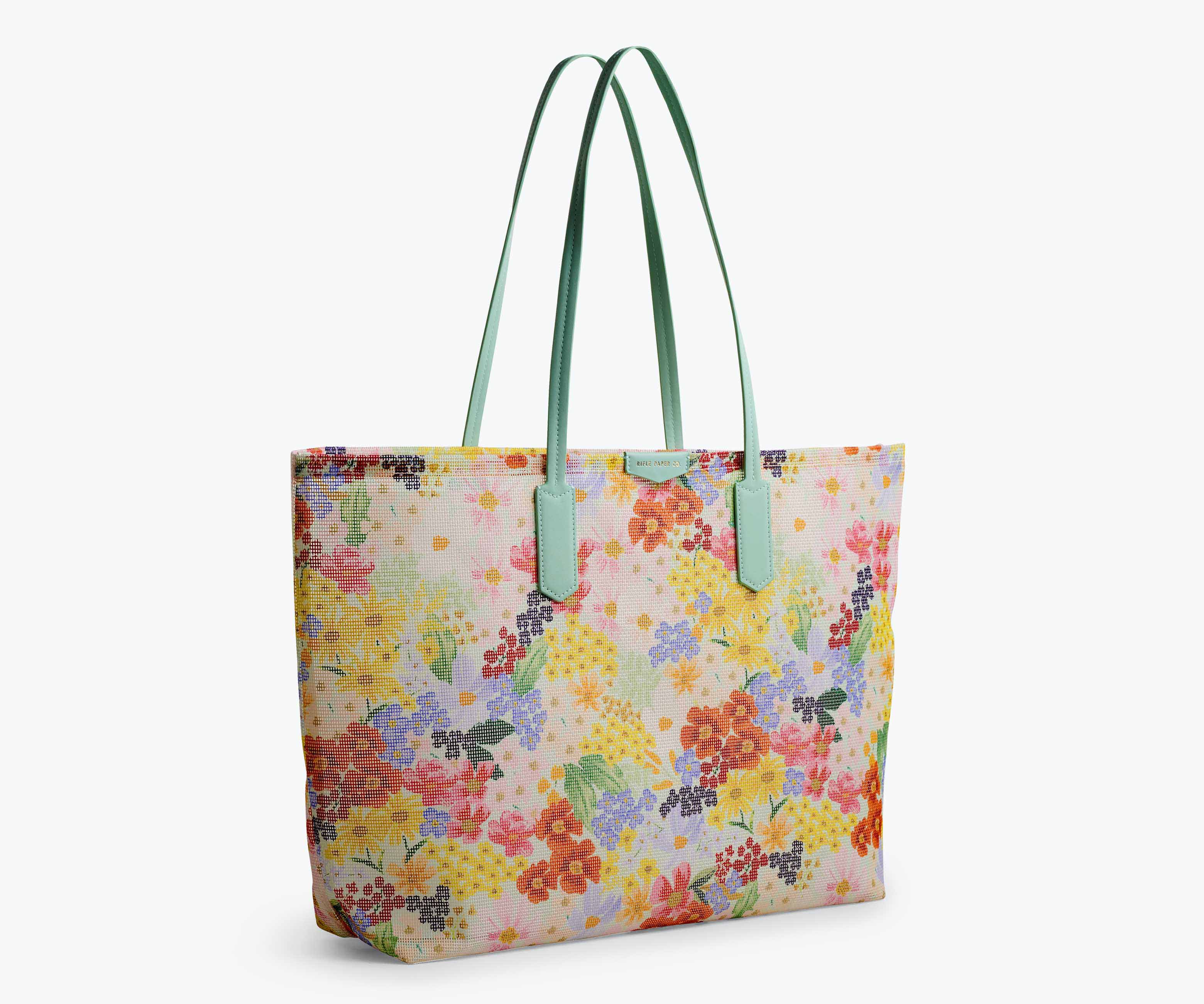 From beach trips to pool days, our mesh totes are the companion to all your summer adventures. The mesh material features our cheerful Margaux print and lets the sand filter out. A matching zipper pouch is included, and can be attached to the interior with a snap closure.